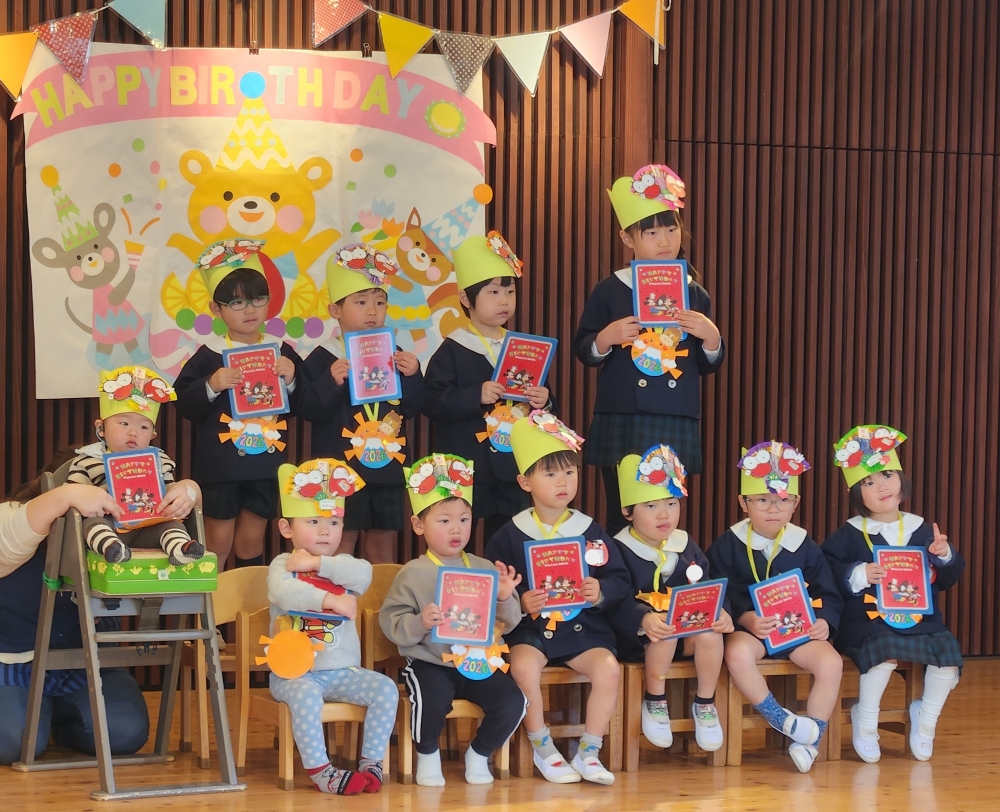 ゲームをしたり、歌を歌ったりもしました。1人ひとり、「私は、○○組の○○です。○歳になりました」と言うんですが、小さいクラスの子で、しっかり言えていたのに、関心し、成長を感じました。