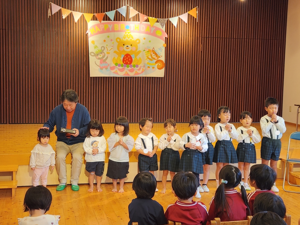 今日は11月生まれの子ども達の誕生会でした。11月の誕生者は多く、10名のお友達でした。徳渕牧師にお祈りをして頂きました。健やかに成長してくれることを願っております。